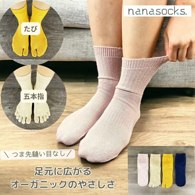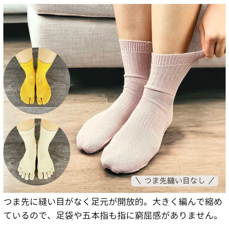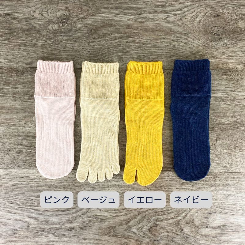 シームレスソックス オーガニックコットン 日本製 レディース 5本指 足袋ソックス ピンク 黄 紺 ベージュ 肌に優しい 履き口 ゆったり 五本指 疲れにくい