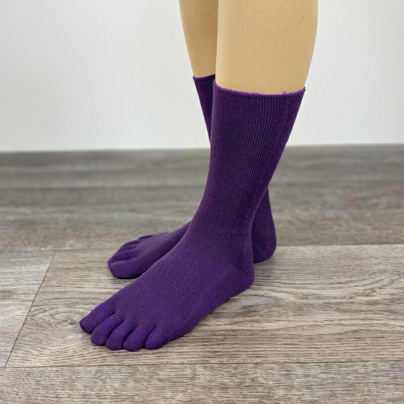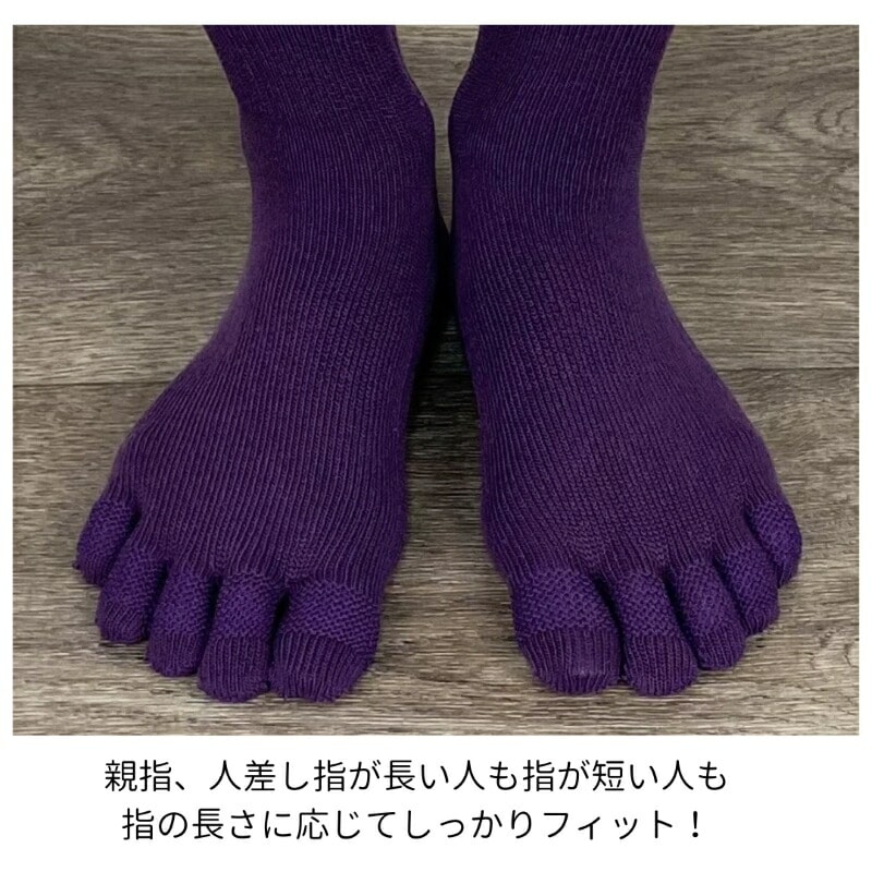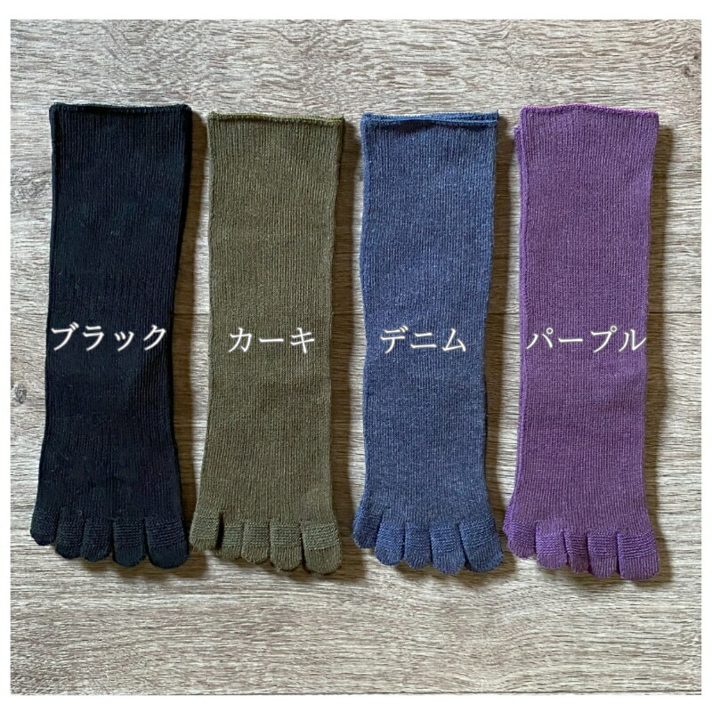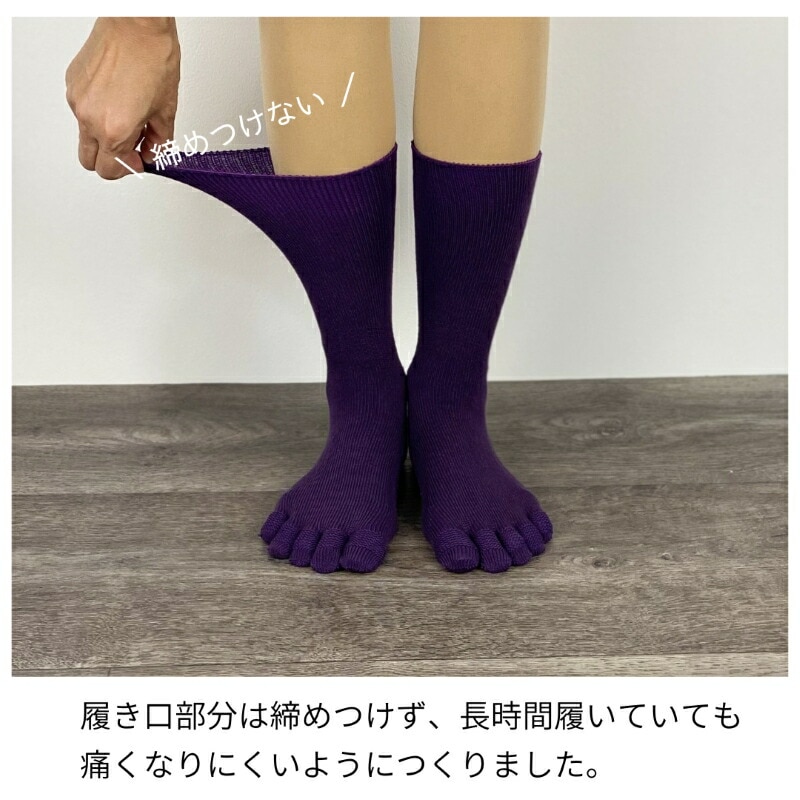 5本指 靴下 日本製 指がのびる ミドル レディース メンズ 紫 紺 黒 カーキ 締め付けない 履き口 ゆったり 指 痛くない ズレない 疲れにくい