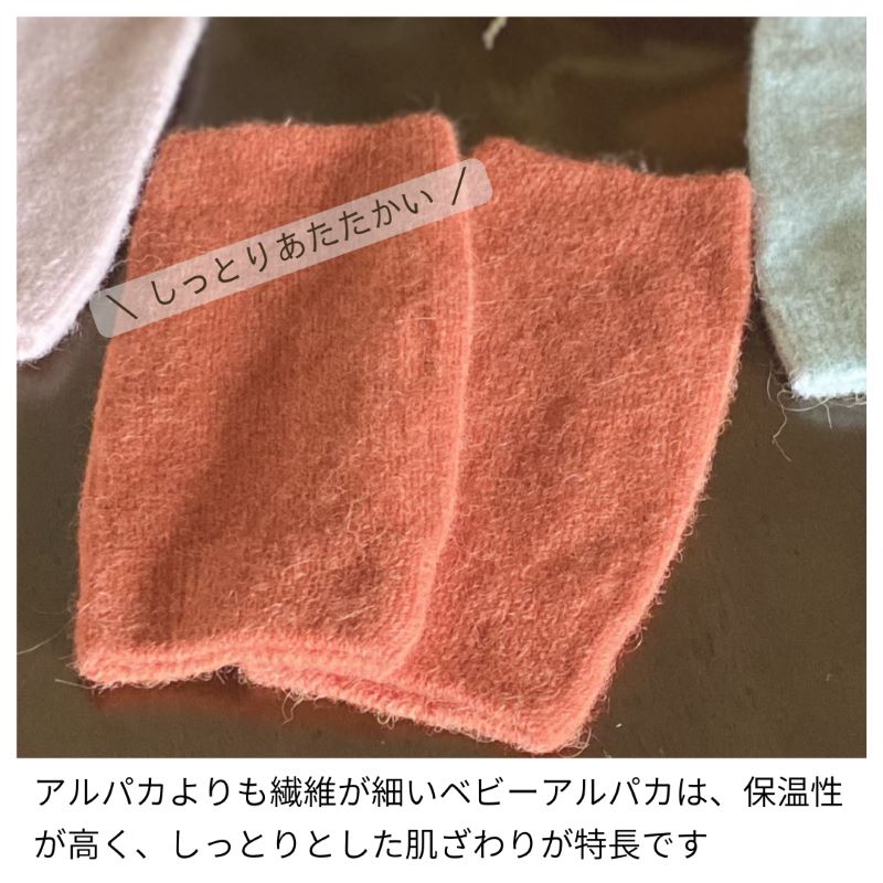 ベビー アルパカ ハンドウォーマー 日本製 レディース オレンジ ピンク ブルー アーム ウォーマー 手首 保温 チクチクしない リストウォーマー