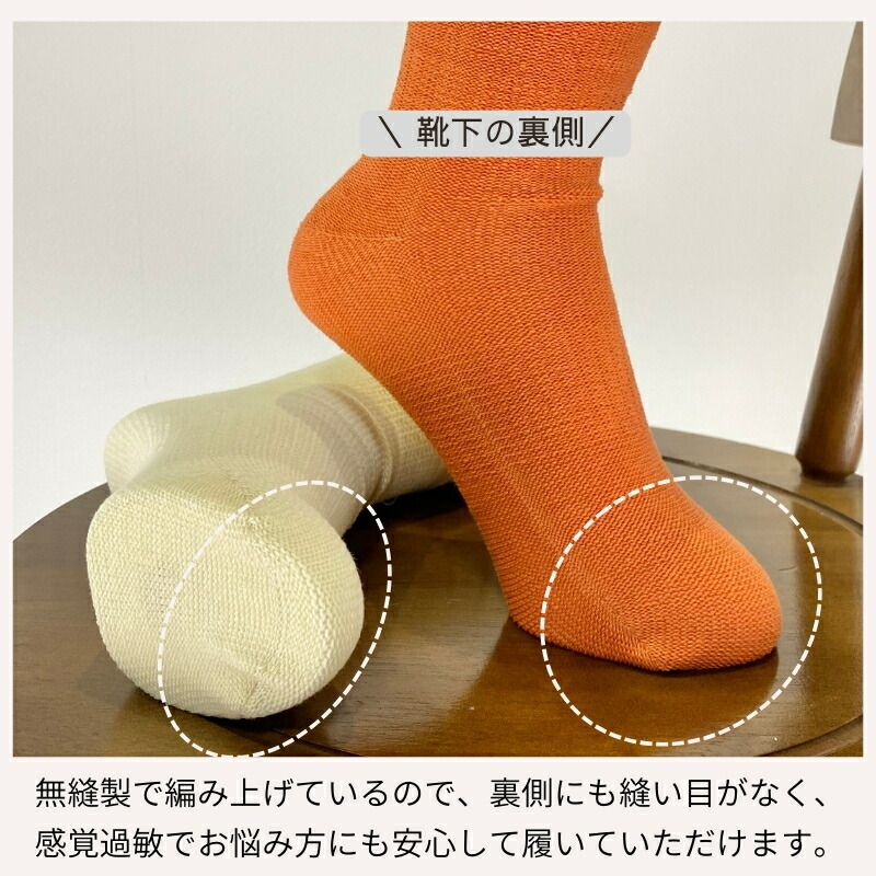 シームレスソックス 靴下 日本製 【1足】レディース メンズ 履き口 ゆったり つま先 縫い目なし 痛くない むくみ 感覚過敏 緑 白 オレンジ グレー 黒