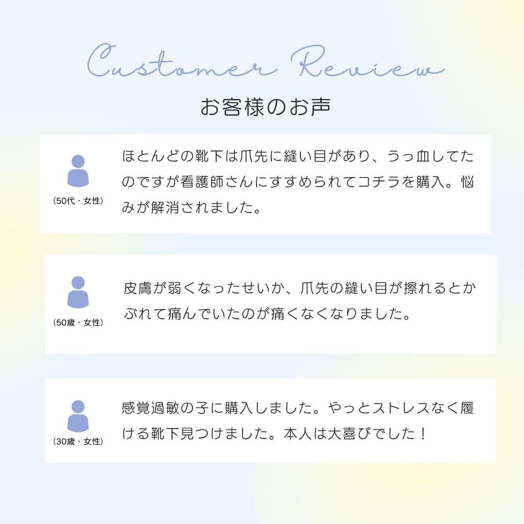 今まで何足も買って、そのたびに縫い目が気になり無駄にしていた中でようやく出会えました。 試しで1着にしましたが、毎日履けるように揃えます。 -