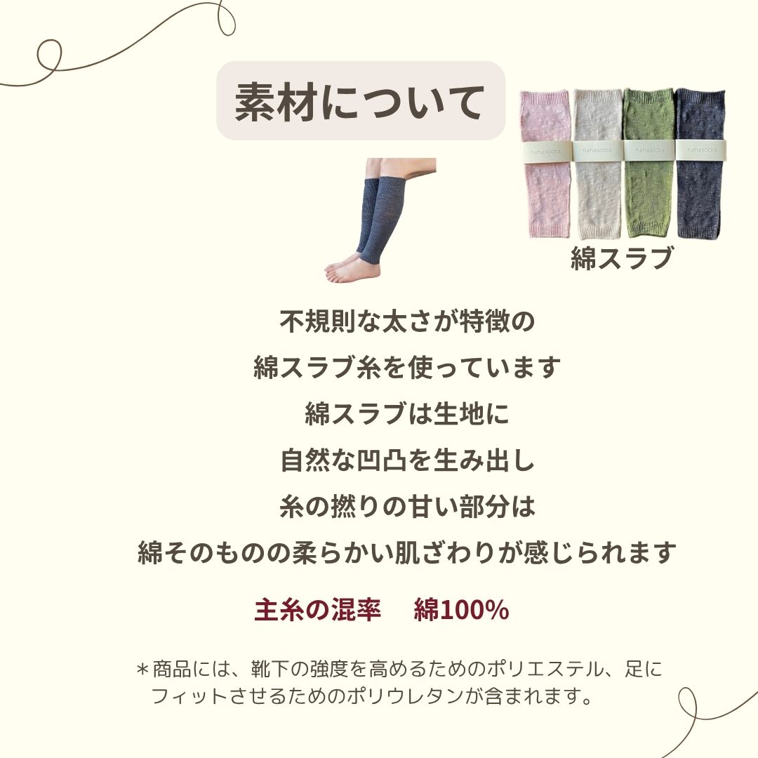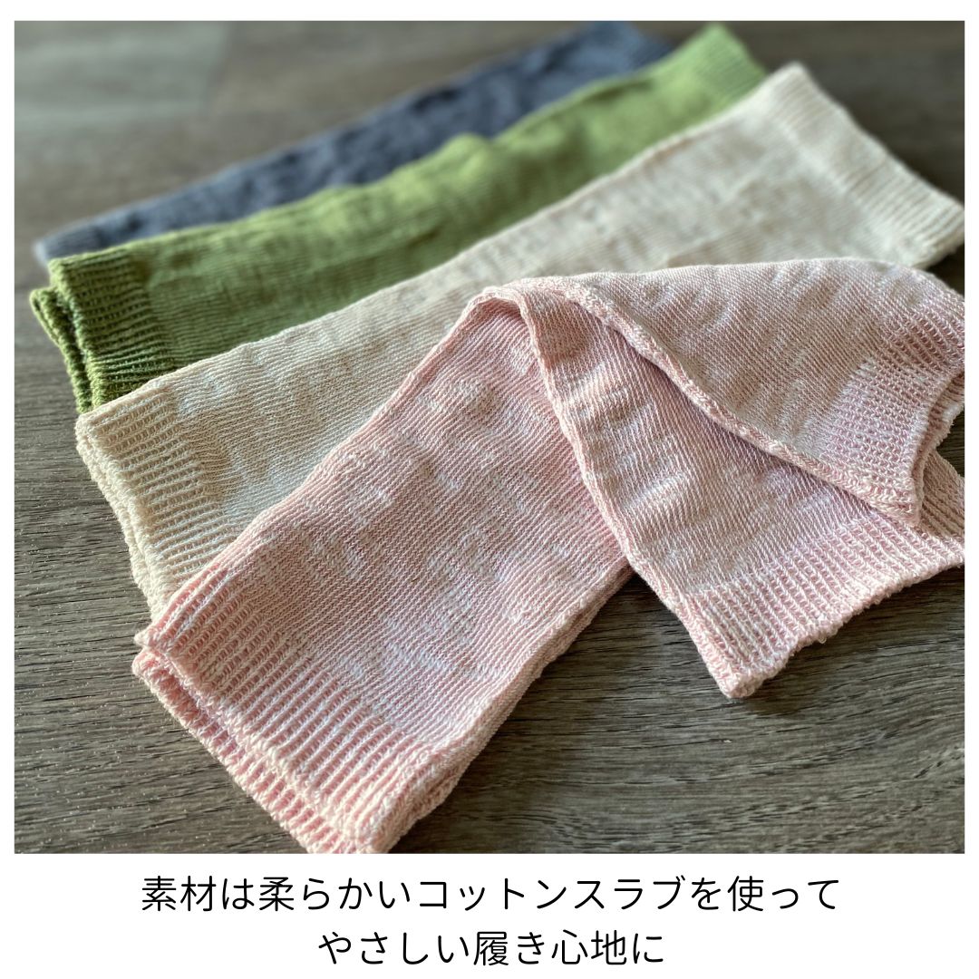 レッグウォーマー 日本製 レディース アイボリー グリーン チャコール ピンク 靴下 綿 肌にやさしい 締め付けない 履き口 ゆったり 夏 コットンスラブ 薄手