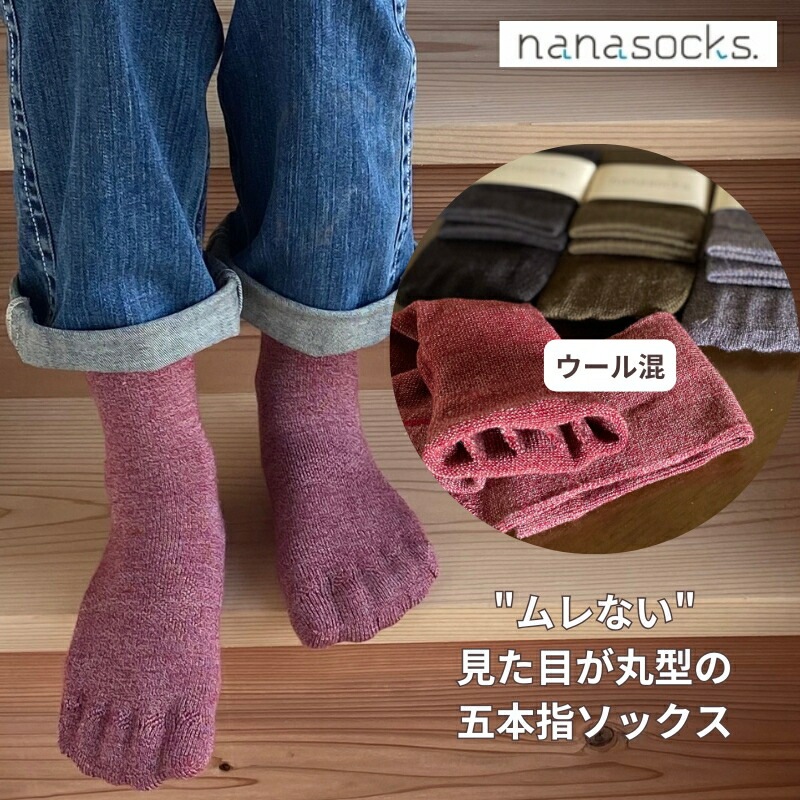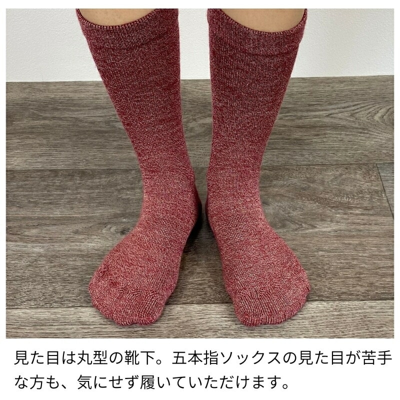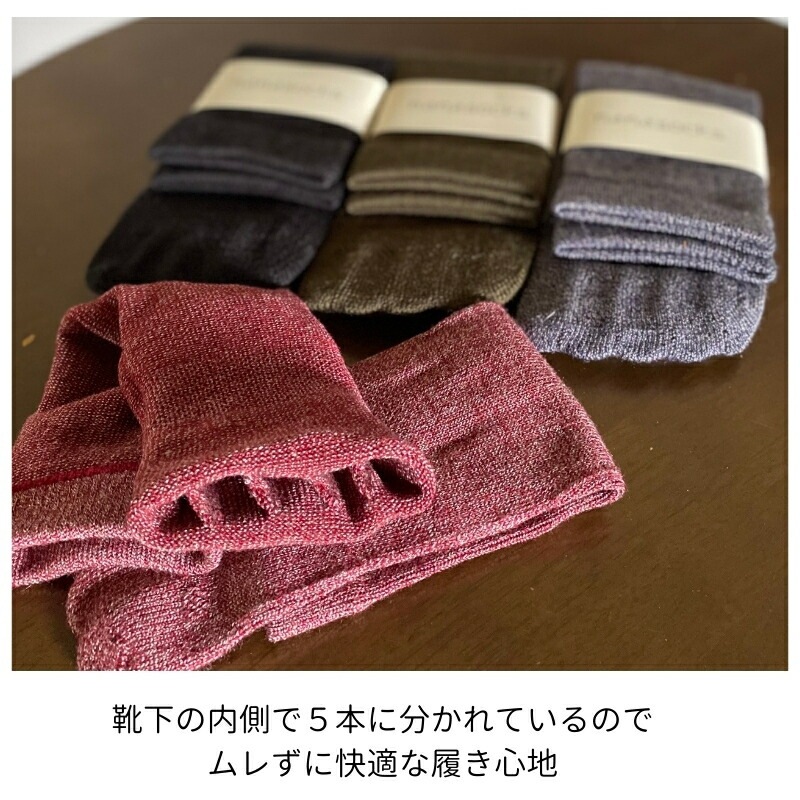 シークレット5本指ソックス ウール混 ミドル 日本製 レディース メンズ カーキ 紺 黒 赤 靴下 ムレない 履き口 ゆったり 5本指 パーテーションソックス