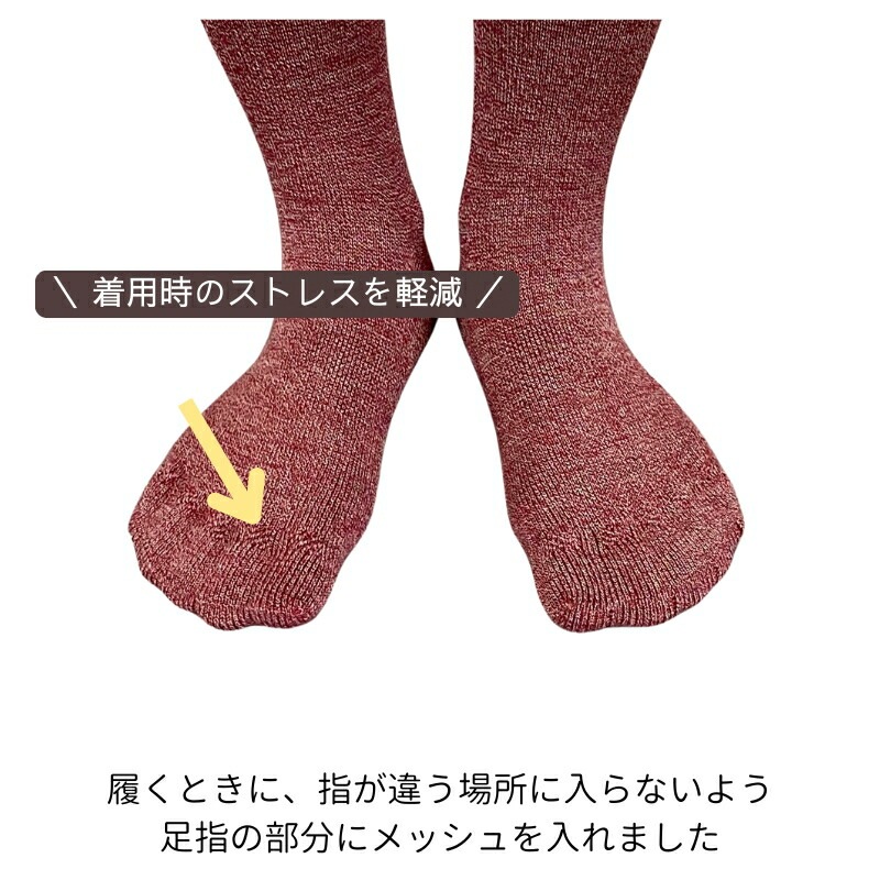 しもやけになりがちな秋冬に向けてこちらを3足購入。5本指がいいけど、見た目は普通のが良くてこちらにしましたが大正解。指も入れやすいし暖かいしよかったです。色はもっと鮮やかなものがあったらいいなと思うけど、秋冬らしくて合わせやすいです。ウール素材も気持ちがいいです。大切に履きます。 -