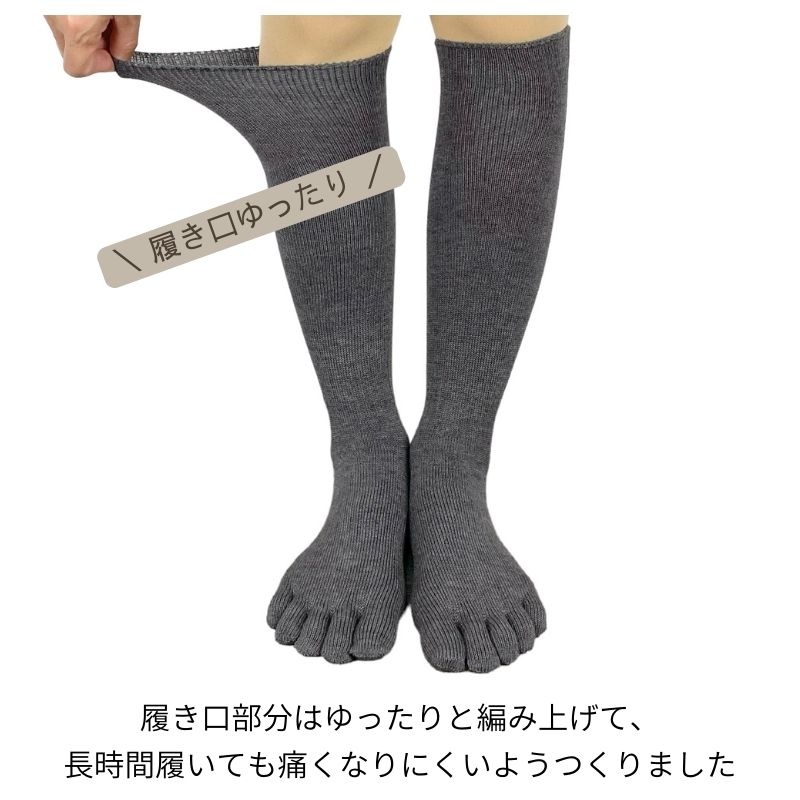 5本指 ハイソックス 日本製 靴下 レディース メンズ ピンク グリーン グレー 黒 五本指 締め付けない 履き口 ゆったりズレない 柔らかい 痛くない むくみ