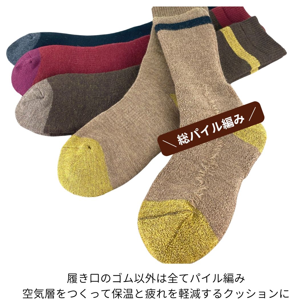 ツイスト パイル ウール混 暖かい 靴下 日本製 レディース メンズ レッド イエロー キャメル 締め付けない 履き口 ゆったり ズレない 冷え 防止 防寒 厚手