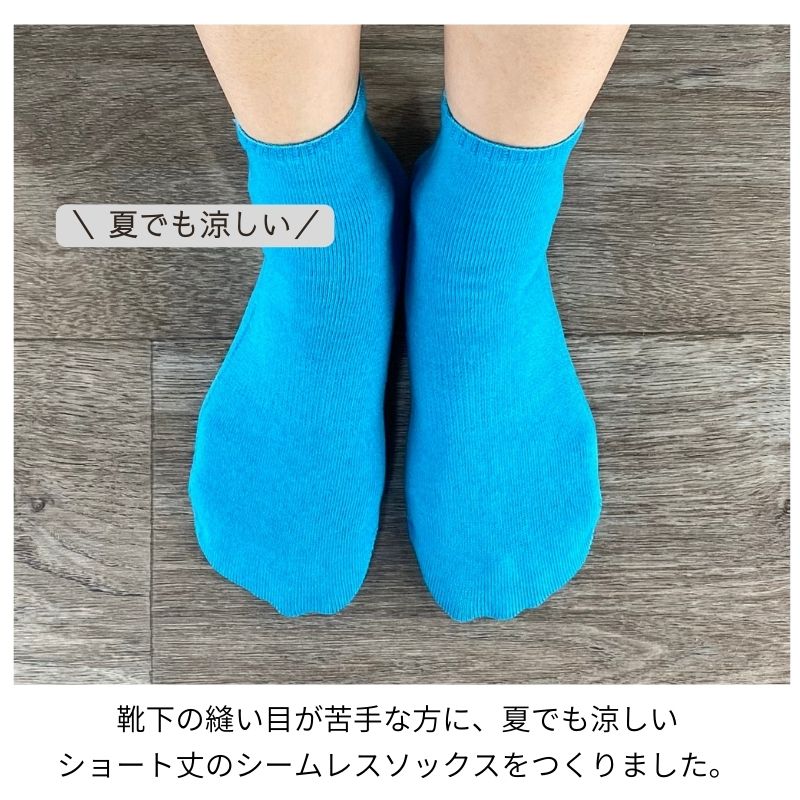 シームレスソックス ショート 綿 日本製 肌にやさしい 白 ピンク グリーン ブルー 青 オールシーズン 夏用 つま先 痛くない 縫い目なし 感覚過敏