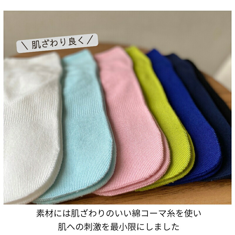 シームレスソックス ショート 綿 日本製 肌にやさしい 白 ピンク グリーン ブルー 青 オールシーズン 夏用 つま先 痛くない 縫い目なし 感覚過敏