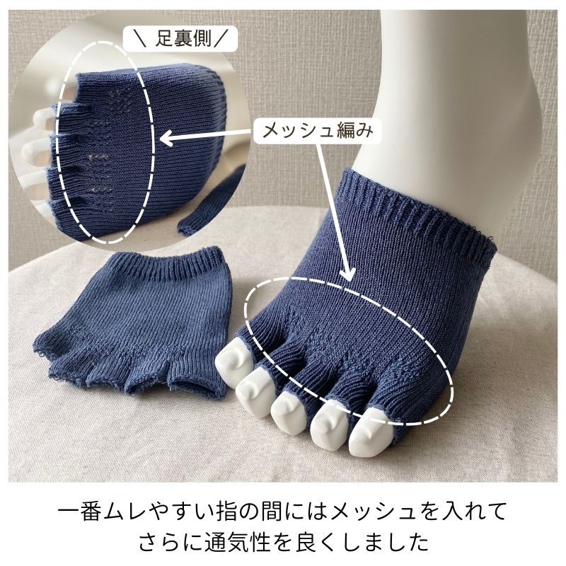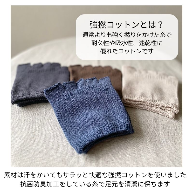 指なし 5本指 靴下 日本製 レディース メンズ 五本指ソックス ベージュ 青 黒 グレー 綿 サンダル 指先なし 肌にやさしい 履き口 ゆったり 夏用 防臭