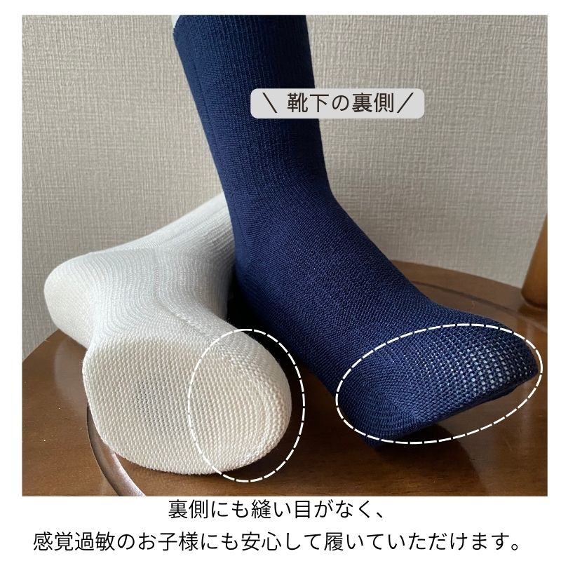シームレスソックス 【2足組】子供用靴下 日本製 綿 くるぶし 白 黒 紺 スクールソックス 感覚過敏 肌にやさしい つま先 痛くない キッズ 靴下