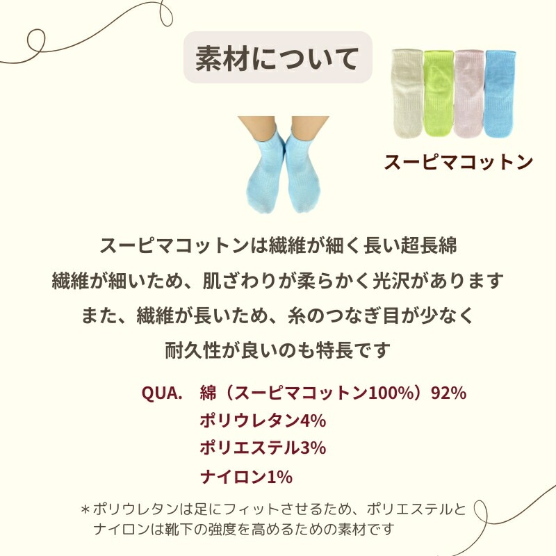シームレスソックス 子供用靴下 ショート 日本製 スーピマコットン 白 ピンク 黄色 水色 幅 細い 肌にやさしい 綿 感覚過敏 つま先 痛くない シームレス キッズ