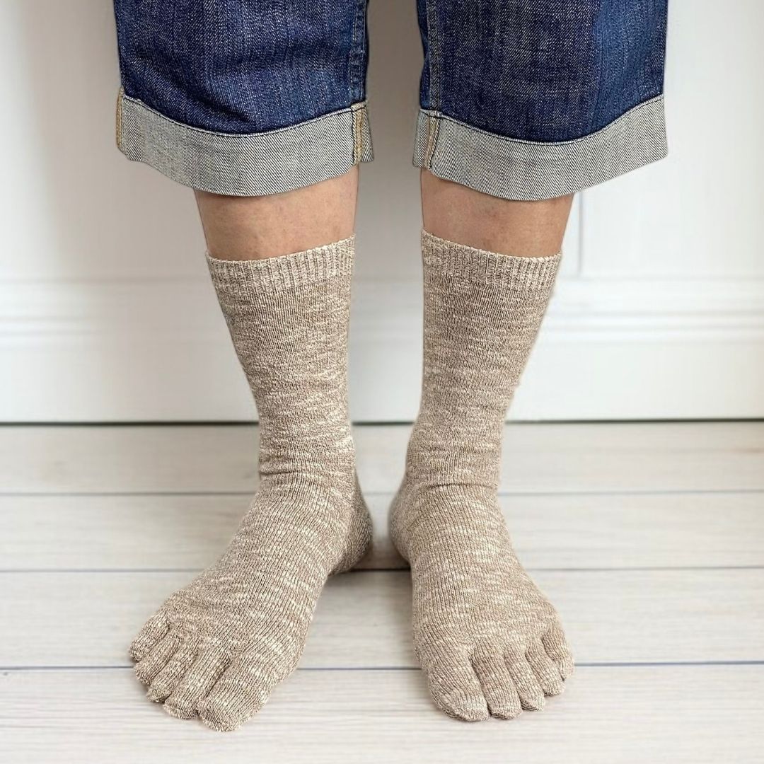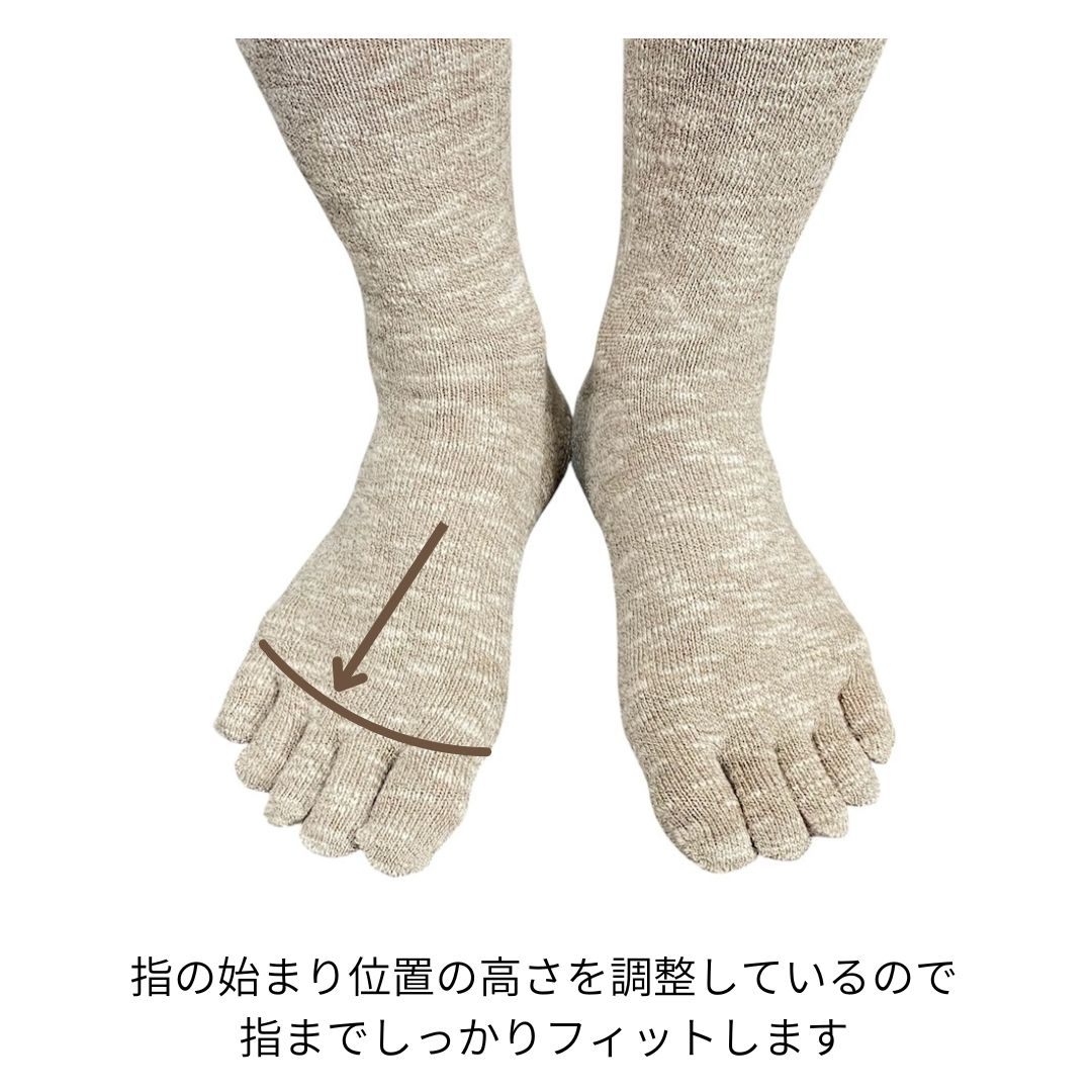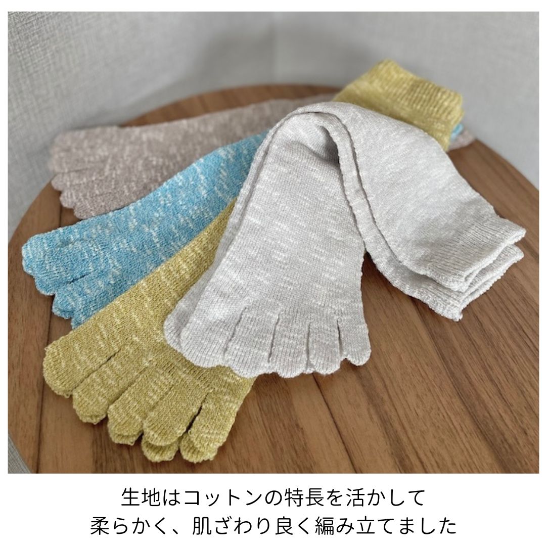 5本指 靴下 ネップ 日本製 コットンリネン レディース メンズ ベージュ グレー 青 黒 履き口 ゆったり 指 痛くない疲れにくい ズレない 21 22 27 28 29