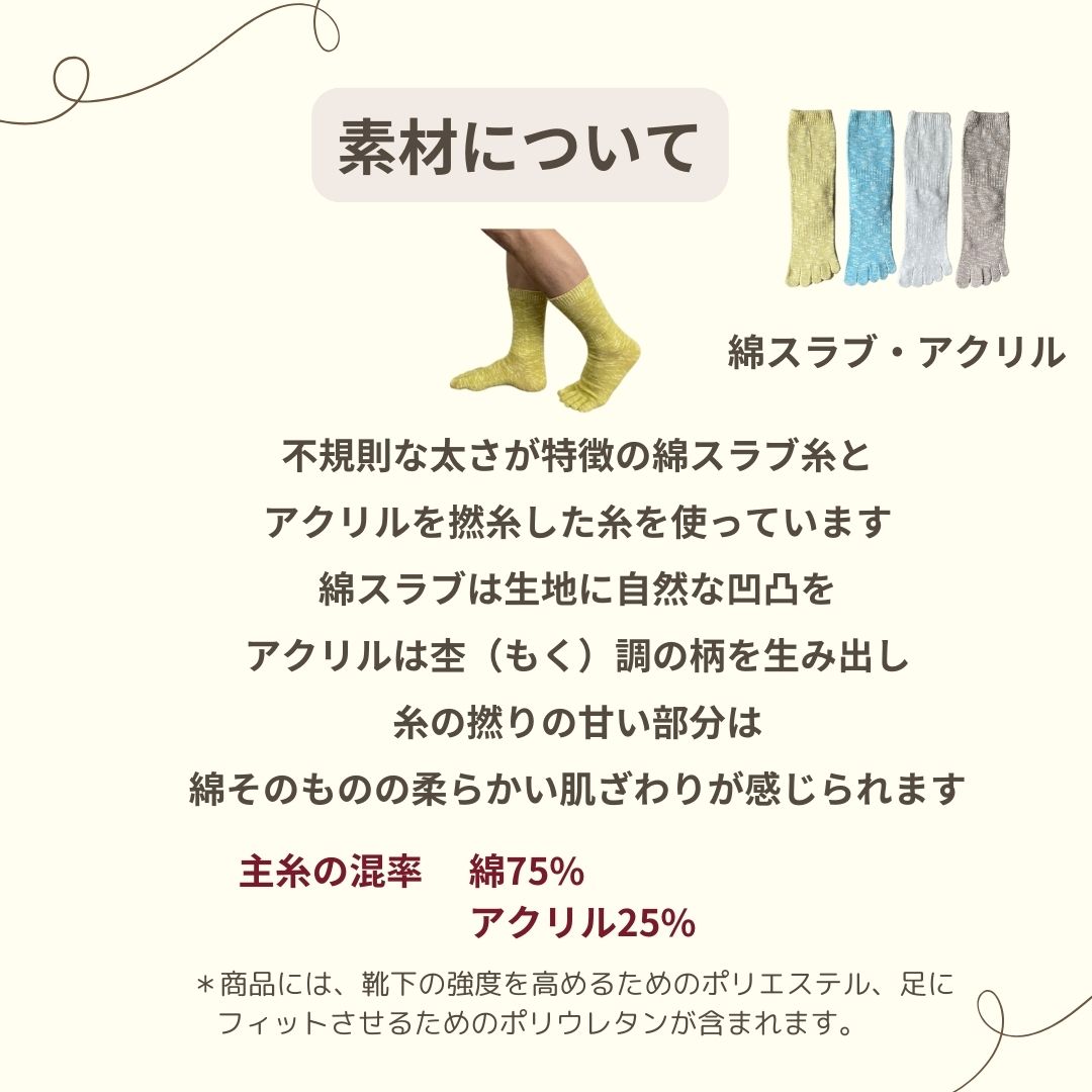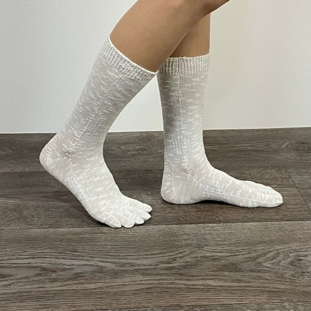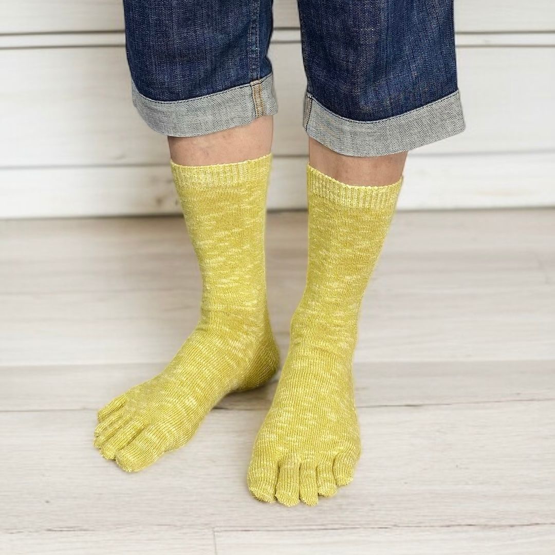 5本指 靴下 ネップ 日本製 コットンリネン レディース メンズ ベージュ グレー 青 黒 履き口 ゆったり 指 痛くない疲れにくい ズレない 21 22 27 28 29