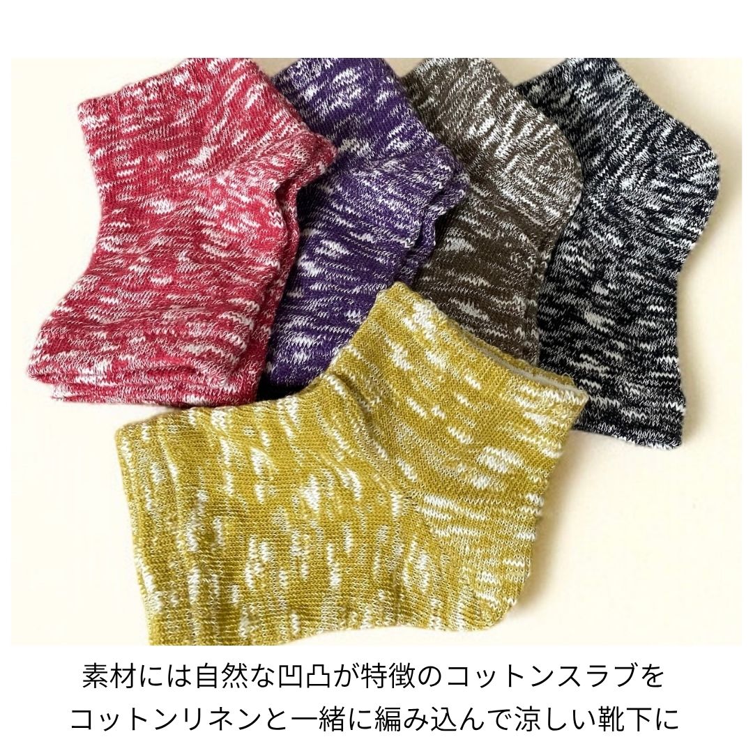 スニーカーソックス 靴下 日本製 コットンリネン ニュアンスカラー レディース 麻 夏用 涼しい アンクル 白 青 グリーン キャメル ローカット