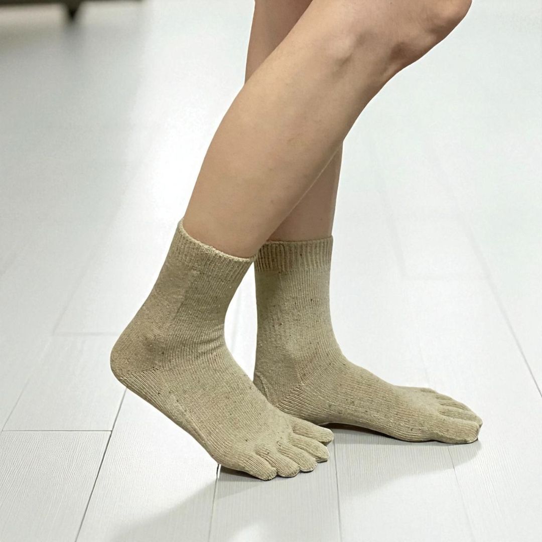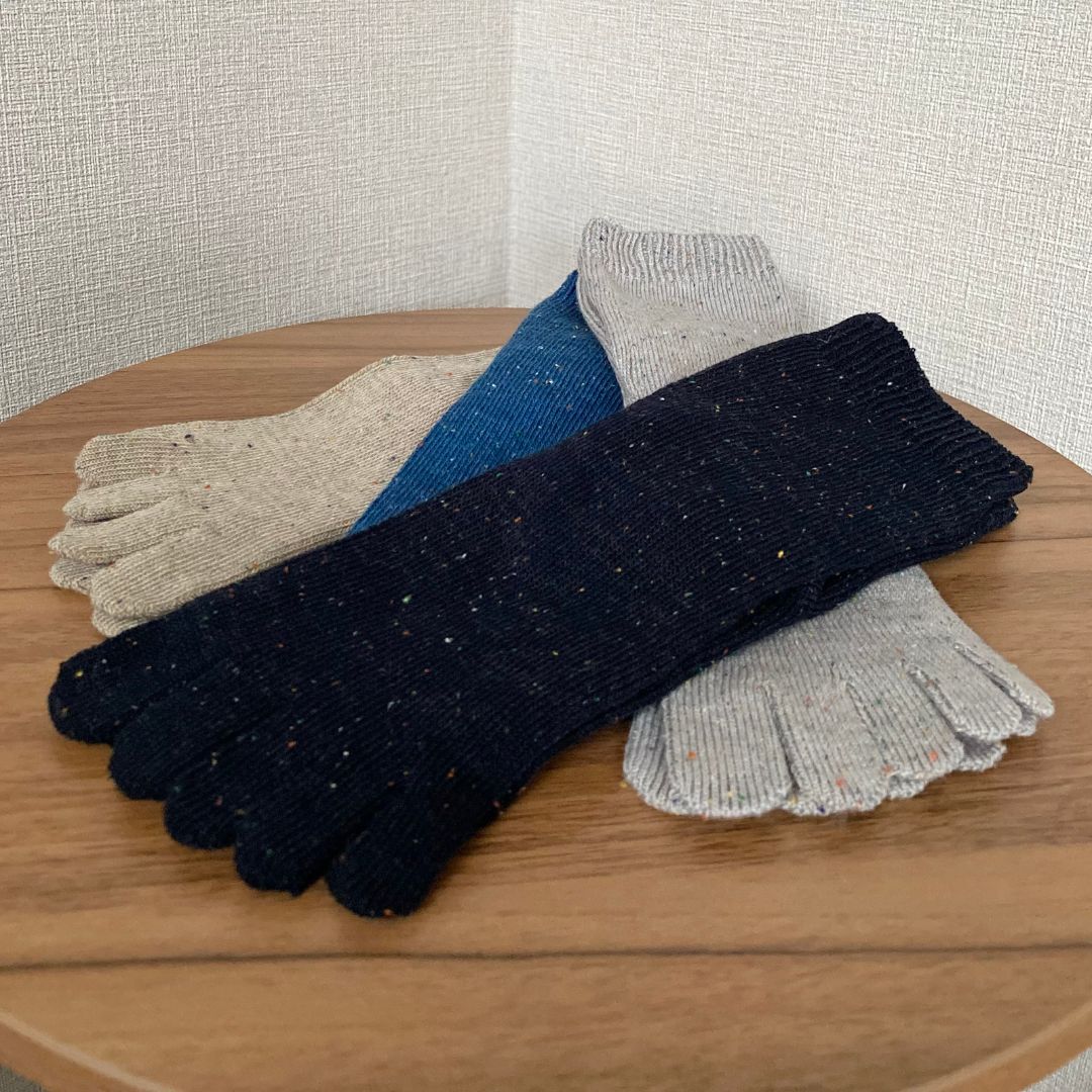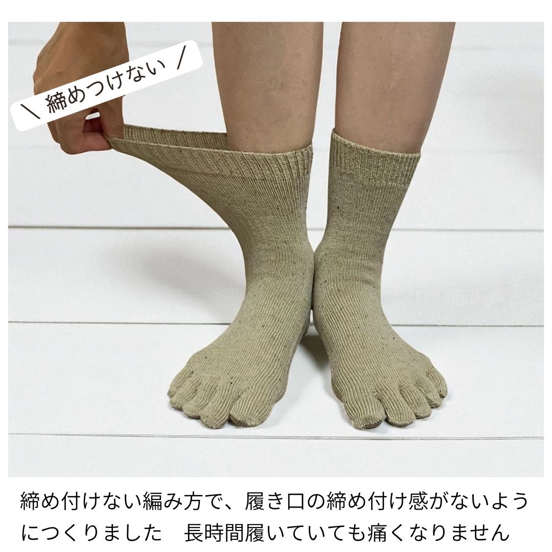 5本指 靴下 ネップ 日本製 コットンリネン レディース メンズ ベージュ グレー 青 黒 履き口 ゆったり 指 痛くない疲れにくい ズレない 21 22 27 28 29