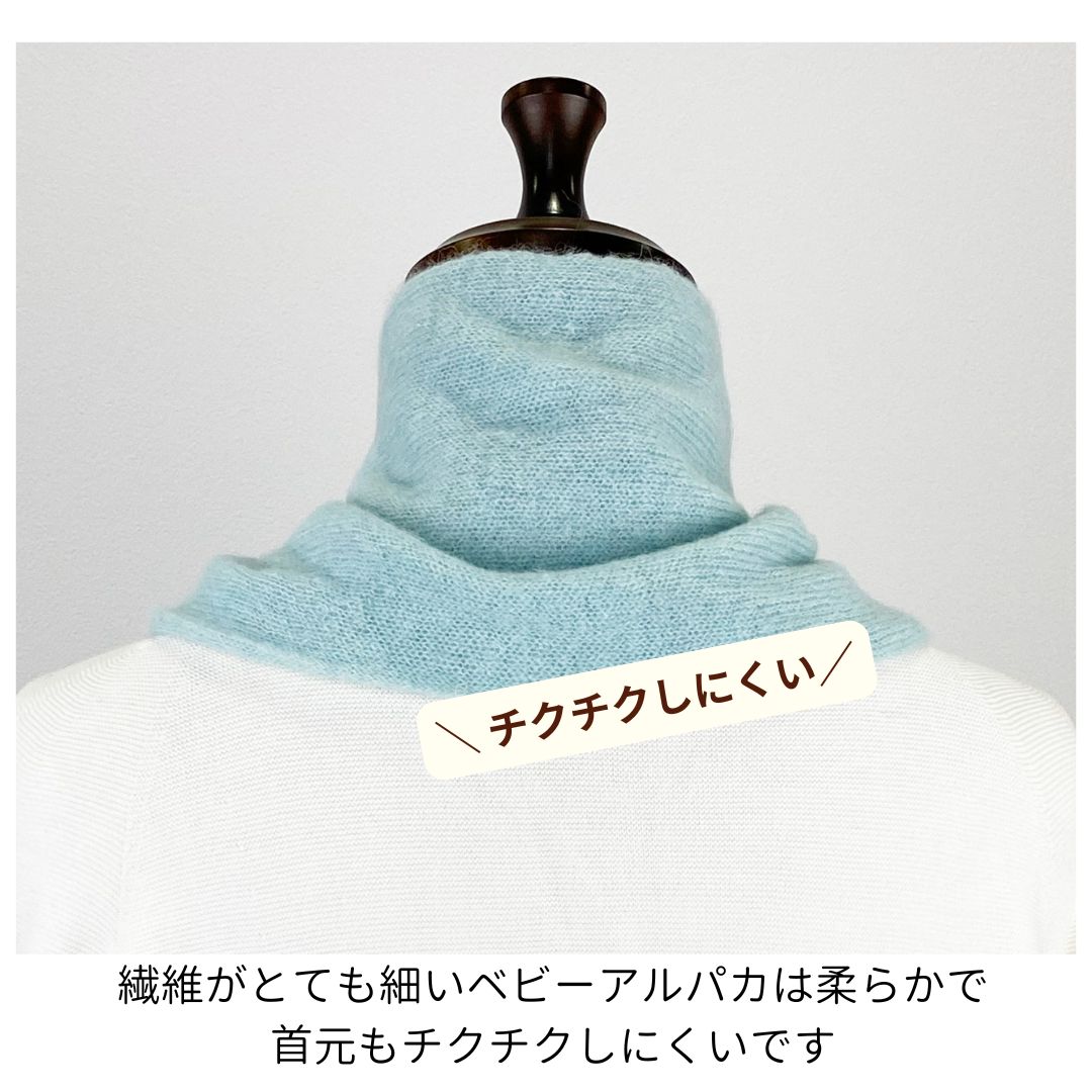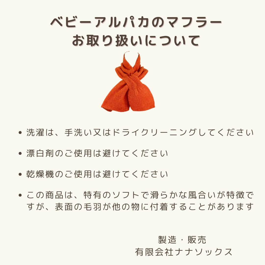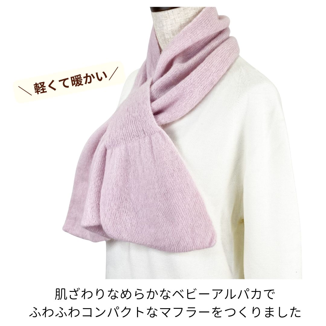 ベビー アルパカ マフラー 日本製 レディース コンパクト 差し込み オレンジ ピンク ブルー 軽い 暖かい チクチクしない プレゼント