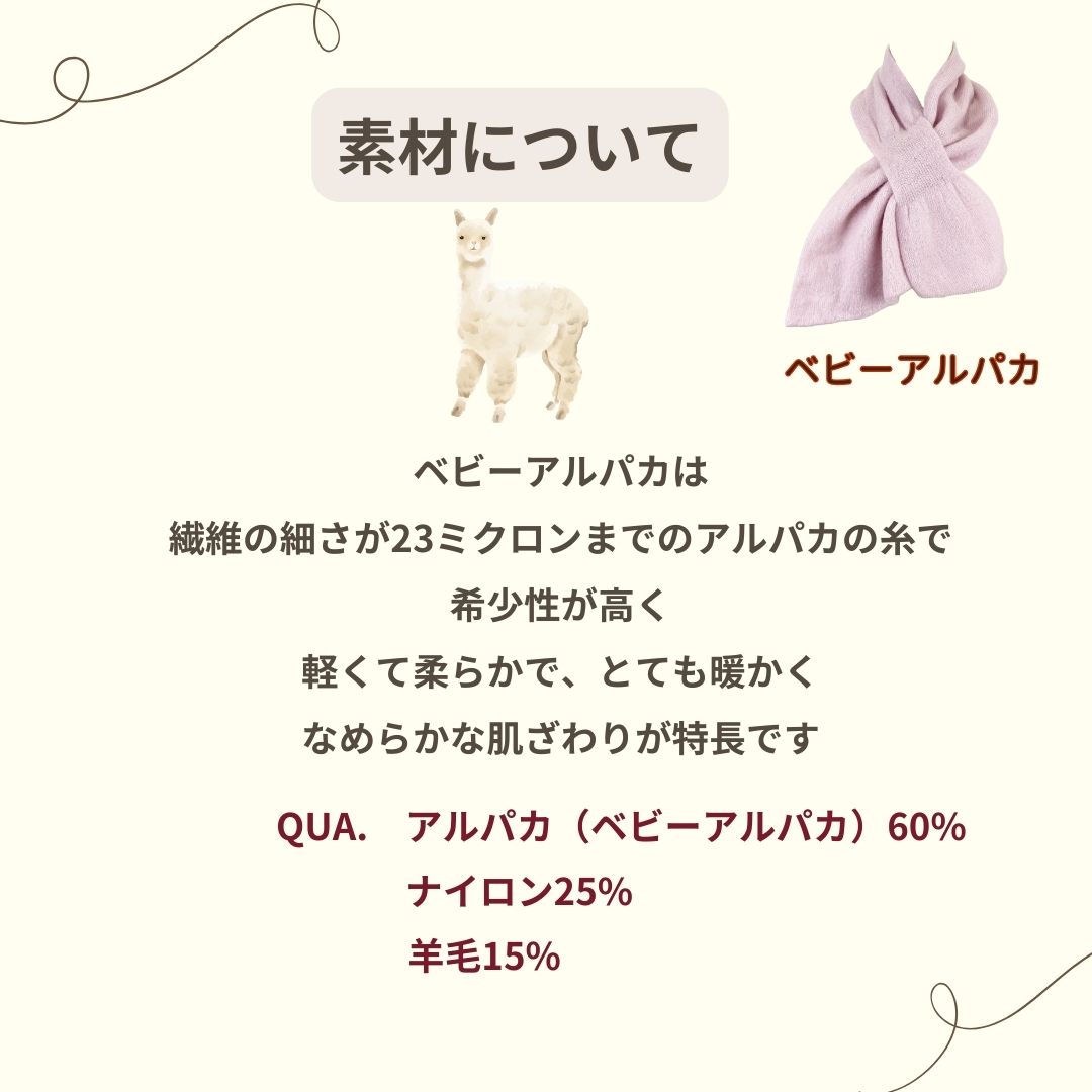 | 素材/材質 | アルパカ(ベビーアルパカ) ナイロン 羊毛 |